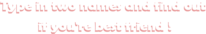 Friendship is one of the most important things in life—whether you're sharing inside jokes, supporting each other through tough times, or just having fun together. But have you ever wondered just how strong your bond is with your best friend? This quiz is all about testing that! By entering the names of you and your bestie, we'll calculate your "friendship compatibility" and show you just how perfect your BFF relationship really is. It's not just about being close—it's about understanding each other, balancing each other's energy, and laughing until your stomach hurts. Your friendship might be playful, protective, chaotic, or deeply supportive—and this quiz will reveal it all.